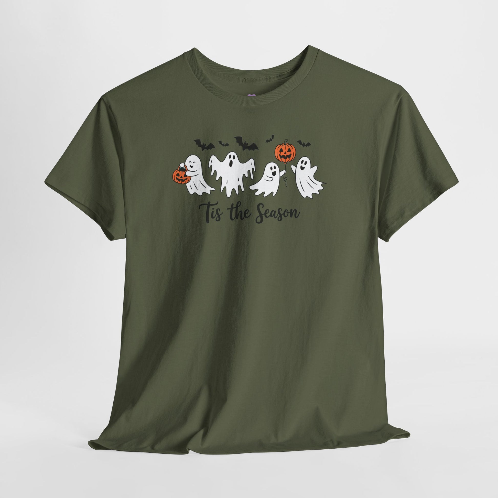 Celebrate spooky season in style with this ’Tis the Season ghost tee! Featuring four playful ghosts, pumpkins, and flying bats, this classic-fit shirt is cozy, durable, and perfect for all your fall festivities — from pumpkin patches to trick-or-treating nights.